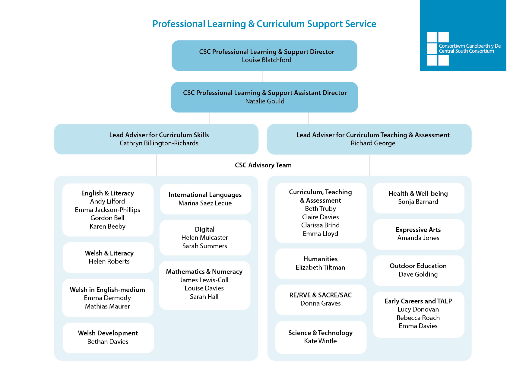 For further information, please contact the members of staff using the email addresses provided or if you have any general queries regarding the work of the Central South Consortium, please let us know on communications@csc.cymru.